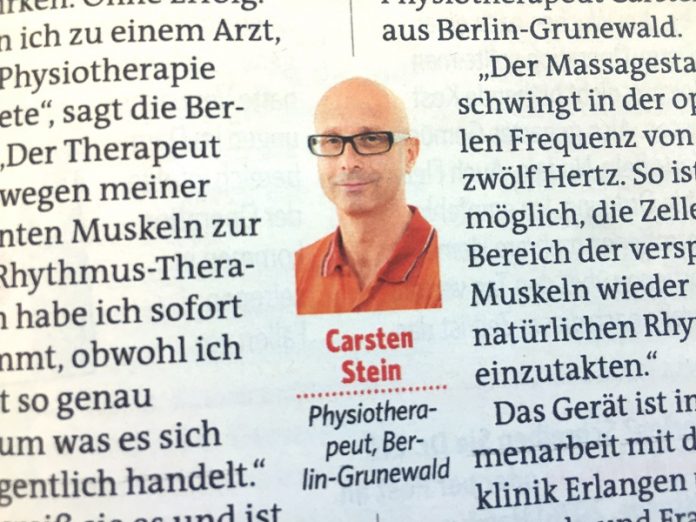 Wir freuen uns sehr über die neue Veröffentlichung für Carsten Stein in der Zeitschrift Bild der Frau vom 02. Dezember 2016. In dem Bericht mit dem Titel Die Matrix-Rhythmus-Therapie half sofort geht es um Spannungskopfschmerzen und wie Carsten Stein, Physiotherapeut und Matrix Health Partner einer Patientin, die schon alles mögliche versucht hatte, hier mit der MaRhyThe sanft und schnell helfen konnte. Wir gratulieren!